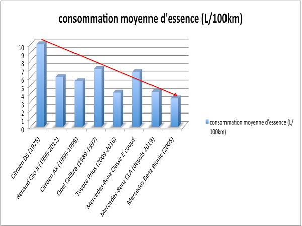 Sur le graphique ci-dessus on remarque également que, globalement, la diminution du Cx rime avec diminution de la consommation (comme indiqué par la flèche rouge).